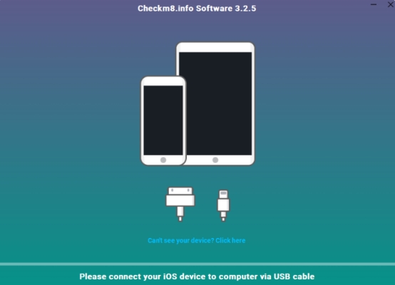 Passaggio 1.Scarica e avvia CheckM8. Quindi collega il tuo dispositivo bloccato da iCloud tramite cavo Lightning.