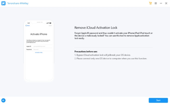 Tenorshare 4MeKeyè anche un software di sblocco Activation Lock molto famoso. Indipendentemente dal fatto che il tuo dispositivo sia in uso o disabilitato, Tenorshare 4MeKey ha il suo modo di rimuovere il blocco di attivazione dal tuo dispositivo. È anche un software multifunzionale