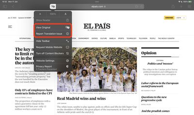 - LancioSafarisul tuo iPhone o iPad, quindi visita una pagina web nella lingua che desideri tradurre e cerca l'icona nella barra degli indirizzi per indicare che è disponibile una traduzione.