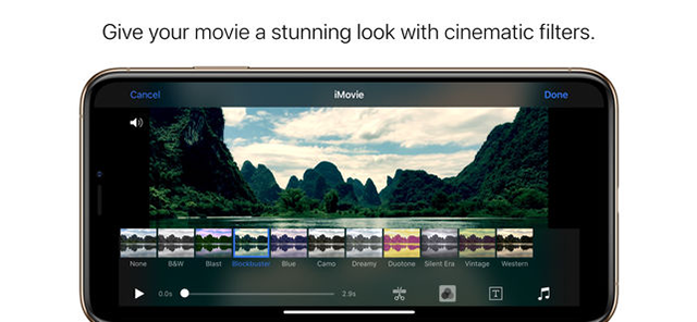iMovieafferma di aiutarti a trasformare i tuoi video in magia cinematografica e fornisce strumenti per consentirti di farlo davvero. L'app è offerta nientemeno che da Apple che ha prodotto il tuo iPhone. Una volta installata l'app, puoi iniziare rapidamente con iMovie, perché è facile navigare tra le opzioni e trovare gli strumenti per aggiungere un po' di magia ai tuoi video.