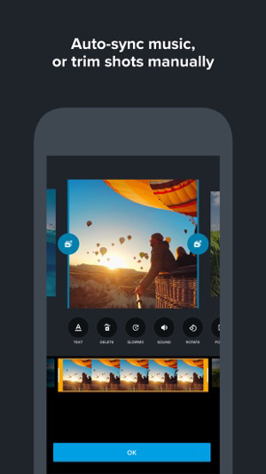 Aiuta a sincronizzare il tuo video con l'audio, ti consente di applicare filtri, aiuta a tagliare e ritagliare i video e ti consente di condividere facilmente video dall'app direttamente sulla tua piattaforma online preferita.