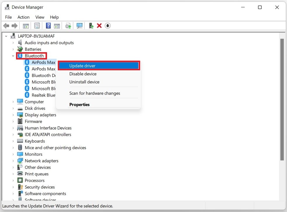 Apri Gestione dispositivi. Nella finestra, espandiBluetoothe fare doppio clic sul dispositivo Bluetooth. SottoAutistafare clic suAggiorna driverpoiCerca automaticamente i conducenti. Ciò garantirà che sia installato il driver più recente e dovrebbe risolvere molti problemi Bluetooth.