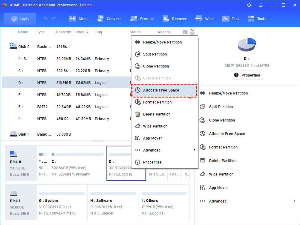 אם כונן ה-C שלך מלא בזמן שכונן ה-D או מחיצה אחרת ריק, מומלץ להקצות משם מקום פנוי לכונן C המלא. IEMOA Partition Assistant יכול לעזור לך לעשות זאת.