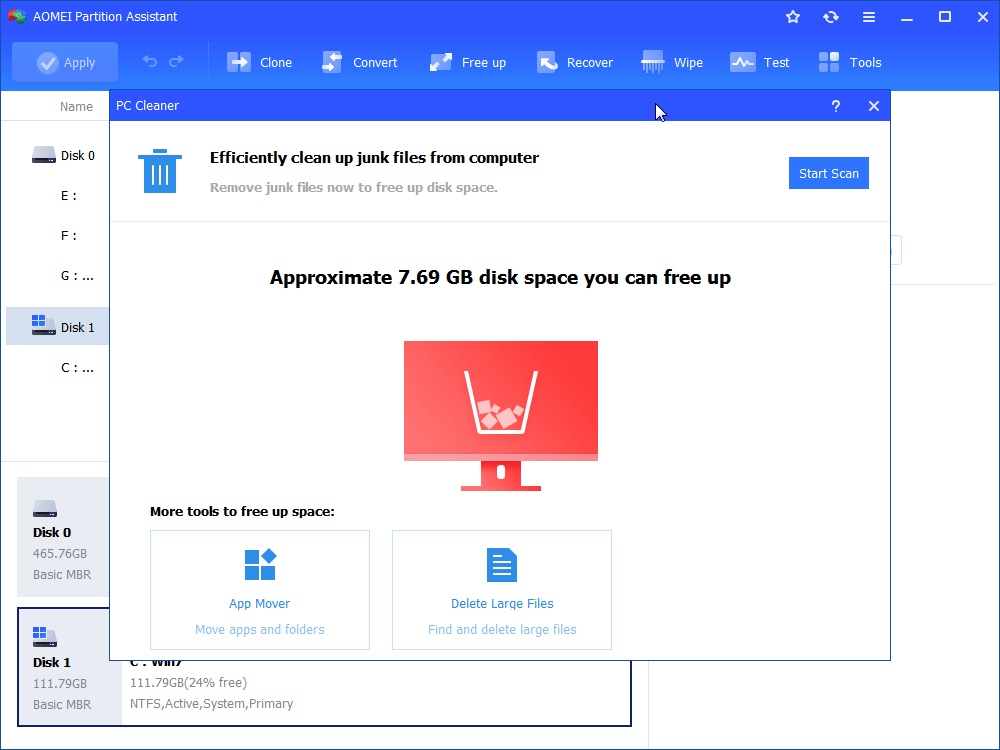 שלב 2.בחר "התחל סריקה" בחלון הקופץ החדש כדי להתחיל סריקה של המחשב שלך לאיתור קבצים מיותרים.