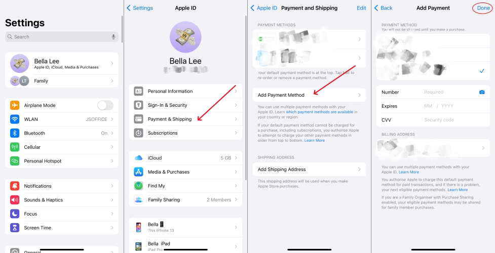 שלב 4.הזן את פרטי התשלום החדשים שלך ולאחר מכן לחץנַעֲשָׂה.