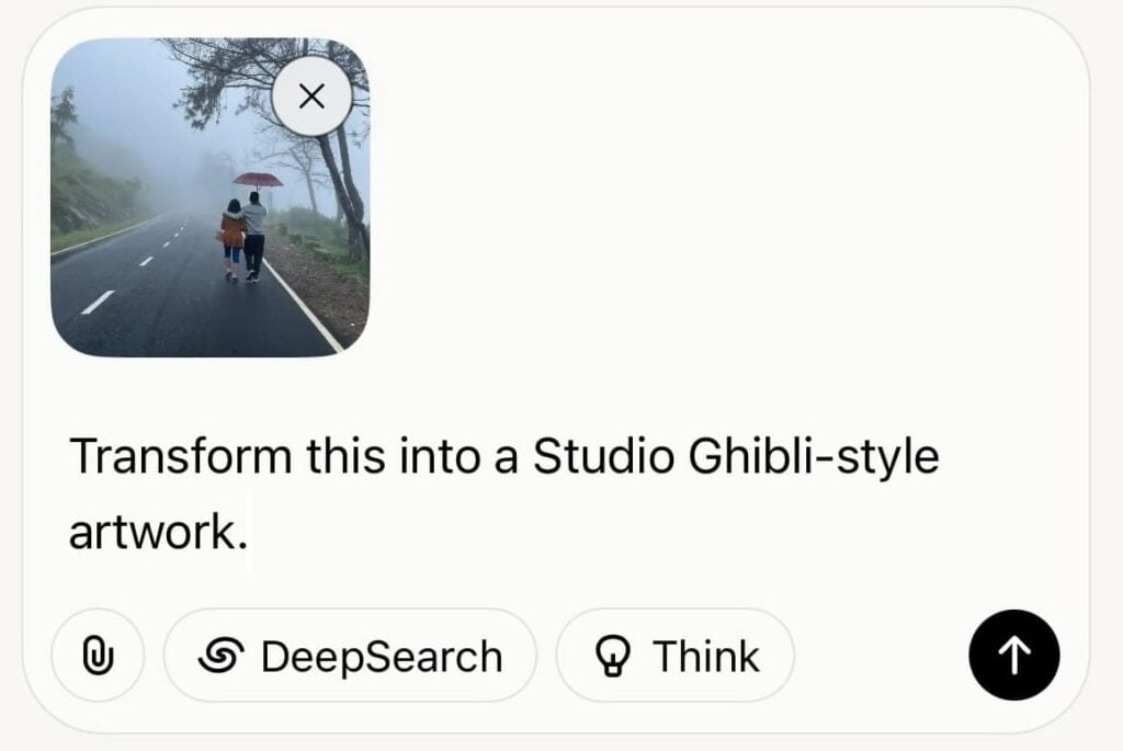 - השתמש בהנחיה כמו: "הפוך את זה ליצירת אמנות בסגנון Studio Ghibli."
