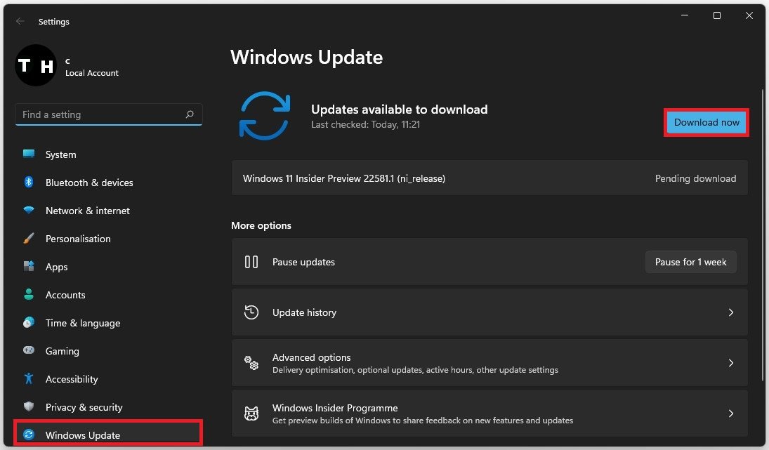 הגדרות Windows > Windows Update