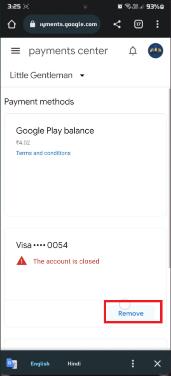 כדי לבטל את אפשרויות התשלום שלך, נווט מטה ובחר "הגדרות תשלום נוספות". מסך זה מציג את כל אמצעי התשלום הזמינים המקושרים לחשבון שלך. פשוט הקש על הלחצן "הסר" הסמוך לשיטה שברצונך למחוק, ובכך עדכן את הגדרות התשלום שלך ב-Google Play.