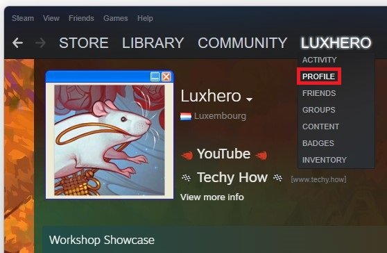 פתח את לקוח Steam שלך ונווט אלפּרוֹפִיל. אתה יכול גם לבצע את אותם השלבים באמצעות Steam בדפדפן שלך.