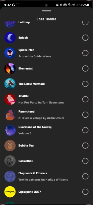 חקור ערכות נושא:בתוך ההגדרות, מצא את האפשרות שכותרתה "נושא". ברגע שתקיש עליו, תפתח אוצר של אפשרויות אסתטיות כדי לשפר את חווית הצ'אט שלך.