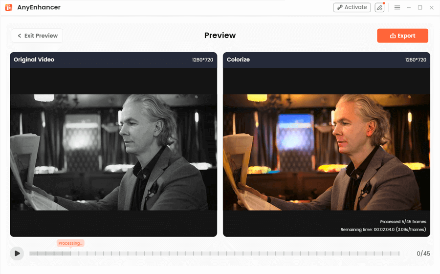 עם זאת, התקדמות בכלי צבעוני וידאו AI הפכו את התהליך למהיר יותר ונגיש יותר. כלים כמו AnyEnhancer הופכים את צביעת הווידאו ללא מאמץ! אתה יכול לצבוע קטעים בגווני אפור עם בהירות ופרטים משופרים בכמה קליקים.