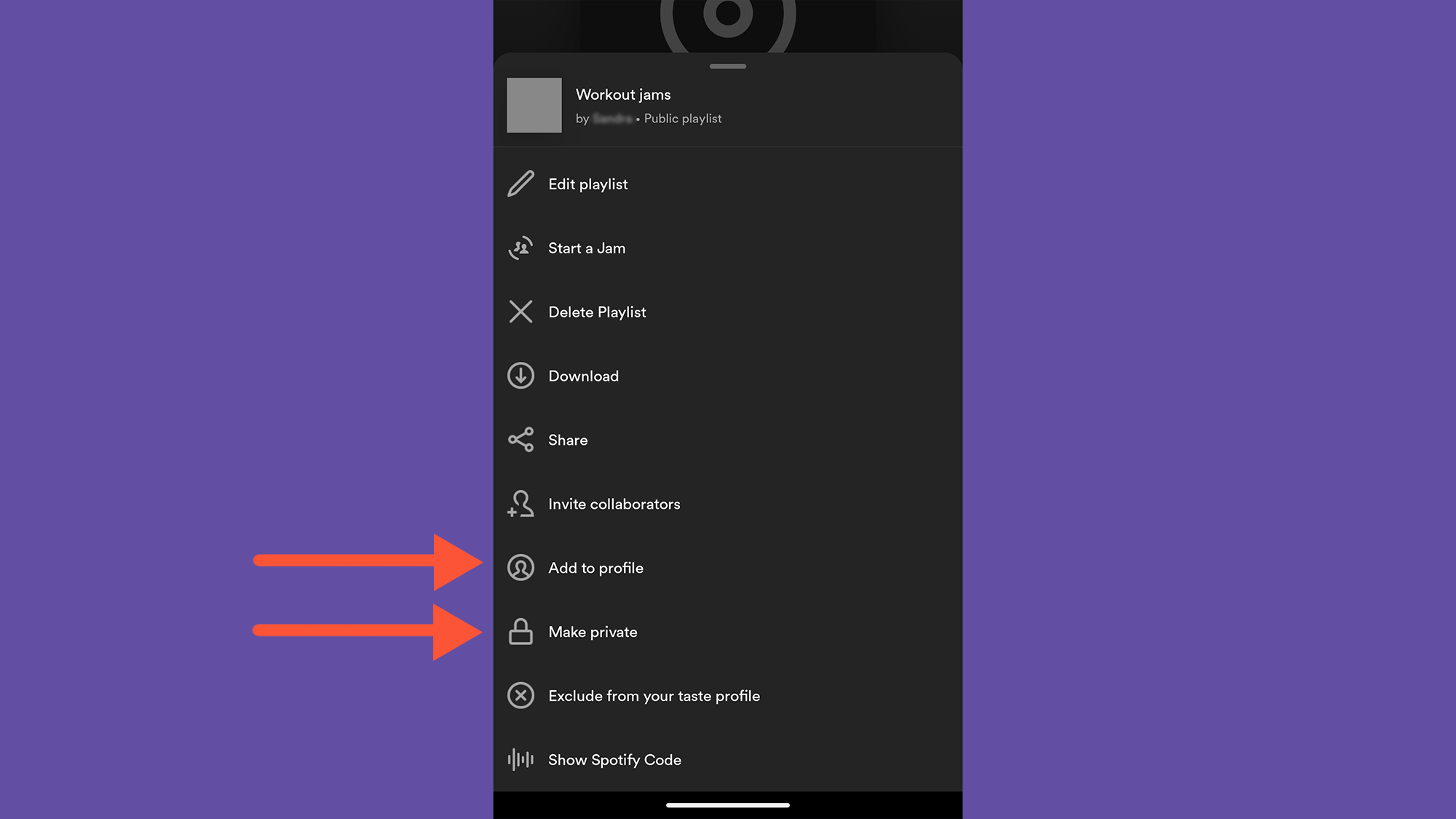 רשימות השמעה חדשות הן ציבוריות כברירת מחדל, מה שאומר שכולם יוכלו למצוא אותן, להפעיל אותן ואפילו לגשת אליהן באמצעות קישור משותף. אבל למרות שהם ציבוריים, הפלייליסטים שלך לא מופיעים בפרופיל שלך כברירת מחדל. כדי לשנות זאת, פתח את רשימת ההשמעה והקש על שלוש הנקודות: בתפריט המתהווה, הקשהוסף לפרופיללהתהדר בכישורי האוסף שלך אוהפוך לפרטיכדי להסתיר את אוסף המנגינות שלך, להסיר אותו מתוצאות החיפוש ולהשבית את הקישור הציבורי שלו.