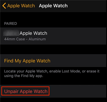 שלב 3. תמצא אפשרות שאומרת Unpair Apple Watch. הקש על אפשרות זו והיא תסיר את השעון המותאם מחשבונך.