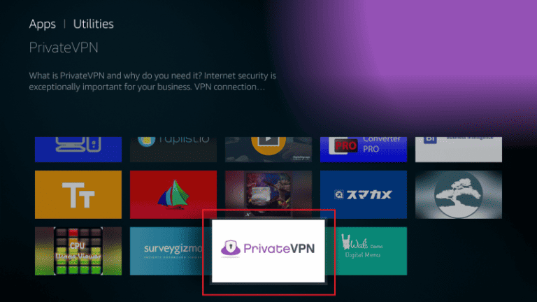 - חפש את "PrivateVPNולהוריד את אפליקציית VPN.