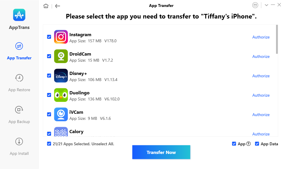 אם אתה רוצה להעביר אייפון ישן לאייפון חדש או לשנות את אנדרואיד למערכת iOS בלחיצות פשוטות, כאן אנו ממליצים לך על האפליקציה הטובה ביותר - AppTrans שתעזור לך לעשות זאת. עם AppTrans, אתה יכול לא רק לשחזר אפליקציות בעת הגדרת iPhone חדש, אלא גם להעביר אפליקציות ונתונים לאחר ההגדרה. חוץ מזה, זה תומך בהעברת אפליקציות ונתונים על פני אנדרואיד ואייפון.