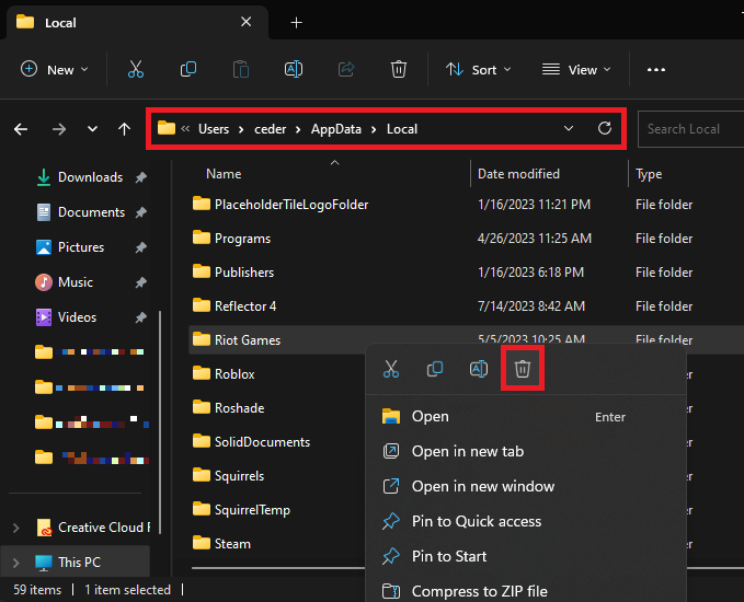המשך למחוק את תיקיית Riot Games.