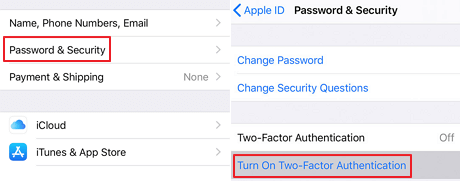עבור אל "הגדרות" באייפון שלך > הקש על שמך > בחר "סיסמה ואבטחה" > הקש על "הפעל אימות דו-גורמי"אפשרות להפעיל אותו.