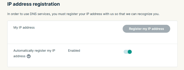 - החלף "רשום אוטומטית את כתובת ה-IP שלי," ואז לחץ על "רשום את כתובת ה-IP שלי.”