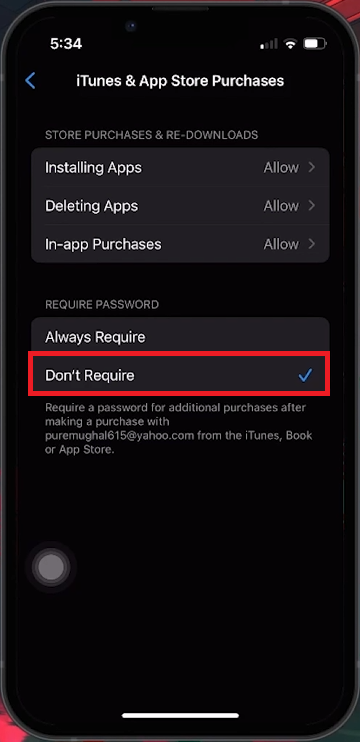 שנה את הגדרות הרכישה של App Store:עבור אל 'רכישות ב-iTunes ו-App Store'. תחת 'דרוש סיסמה', בחר 'אל תדרוש'.
