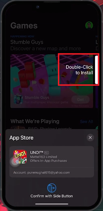 לחץ פעמיים כדי להתקין אפליקציות עם Face ID מופעל