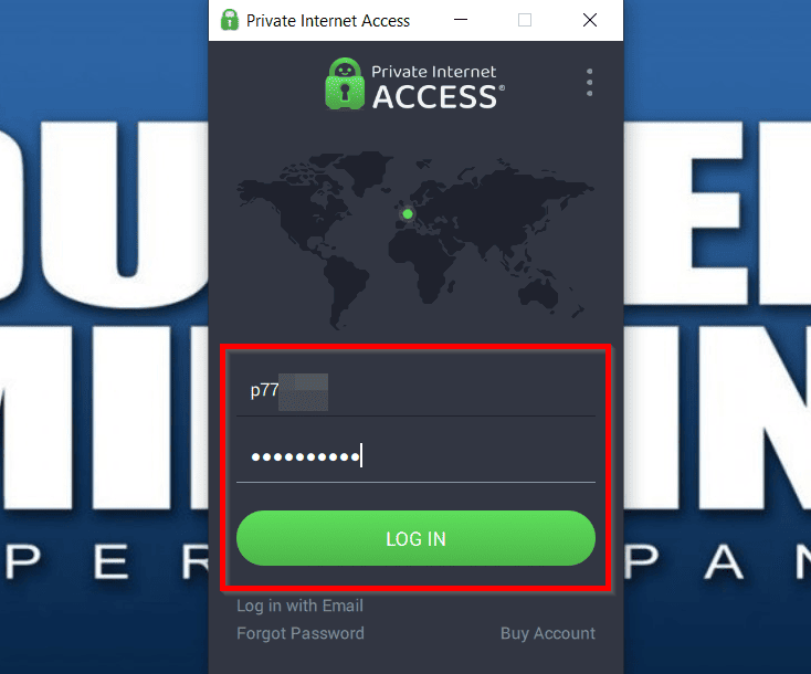 - הפעל את אפליקציית VPN והתחבר עם שם המשתמש והסיסמה שלך ב-PIA.