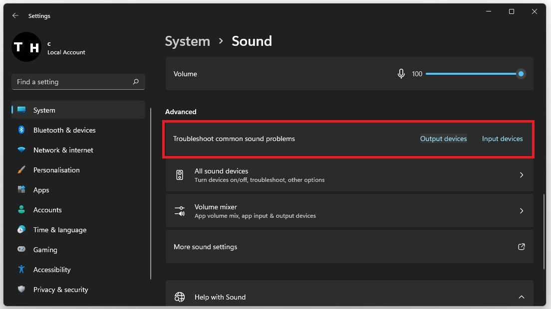 לִבחוֹרפתרון בעיות סאונד נפוצותעבור פלט אודיו או התקן קלט בהגדרות הקול שלך. זה ייקח דקה כדי לזהות בעיות אפשריות במכשיר שלך ויעזור לך לתקן אותן במידת האפשר.