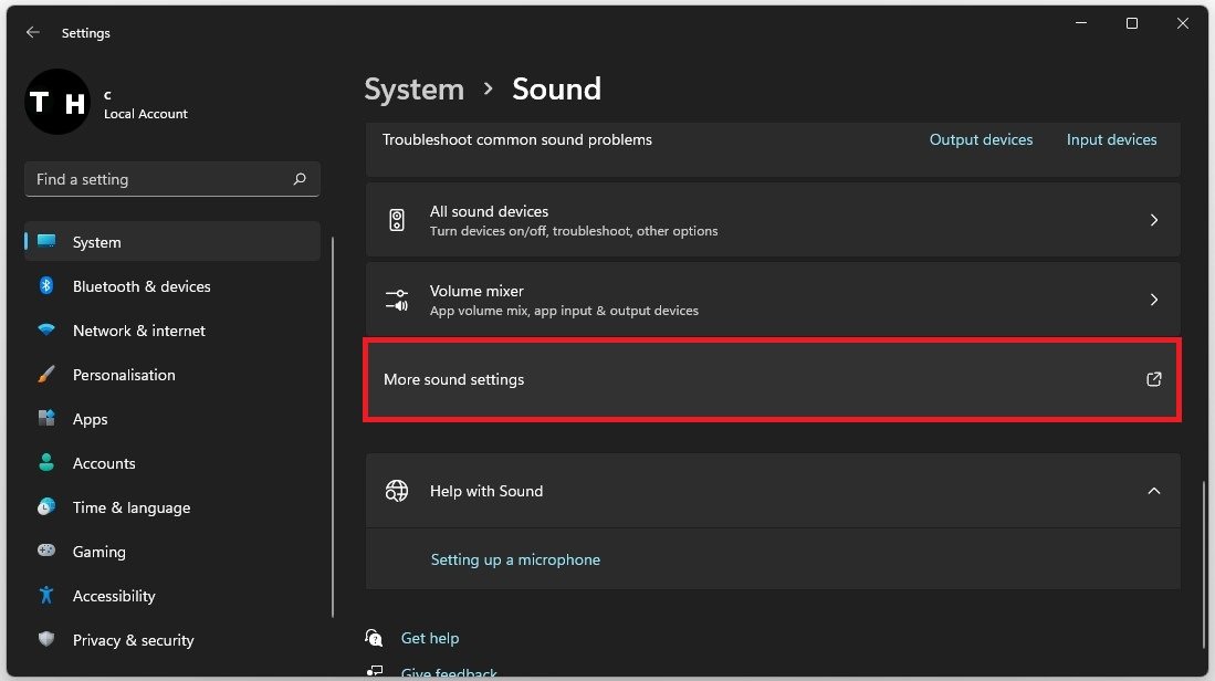 אם שום דבר לא עזר לך, נווט אלהגדרות סאונד נוספותלפתוח את שלךלוח בקרת סאונד.