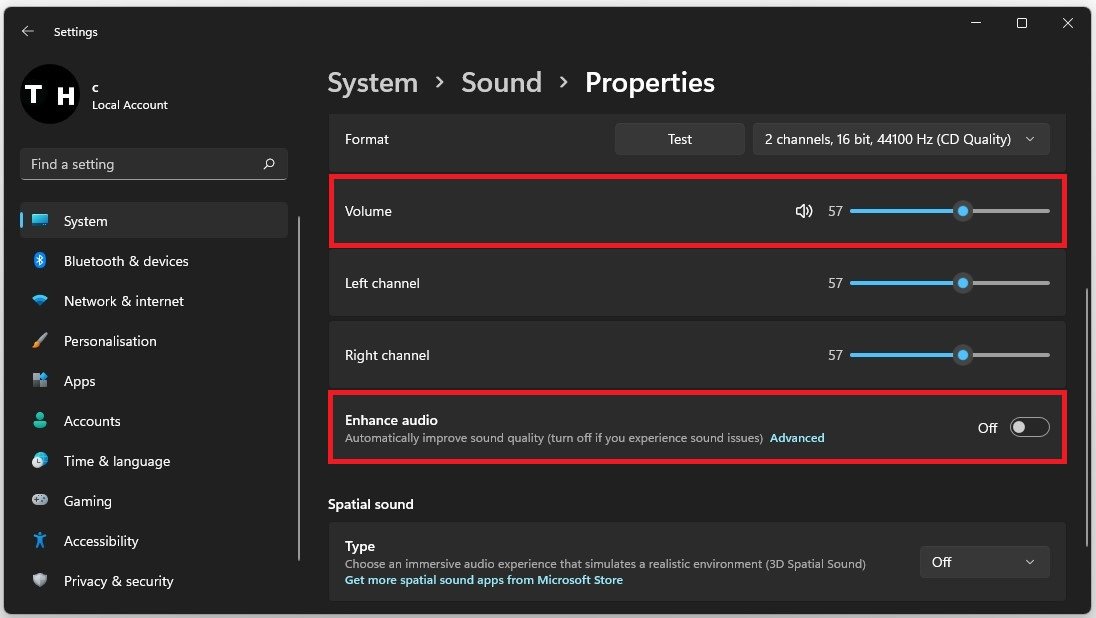 בחר את המיקרופון שלא עובד במחשב שלך ברשימת התקני הקלט שלך. שנה ובדוק את המועדף עליךפוּרמָט. סביר להניח שתרצה להשתמש ב-2 ערוצים 48,000 הרץאוֹ44'100 הרץאוֹפְּצִיָה. להלן, שנה את עוצמת הקלט עבור המכשיר שלך. תלוי באיזו גרסת Windows 11 אתה משתמש כעת ואם המכשיר שלך תומך בה, תוכל לשנות הגדרות נוספות, כמו הפעלתשפר את האודיואוֹפְּצִיָה.