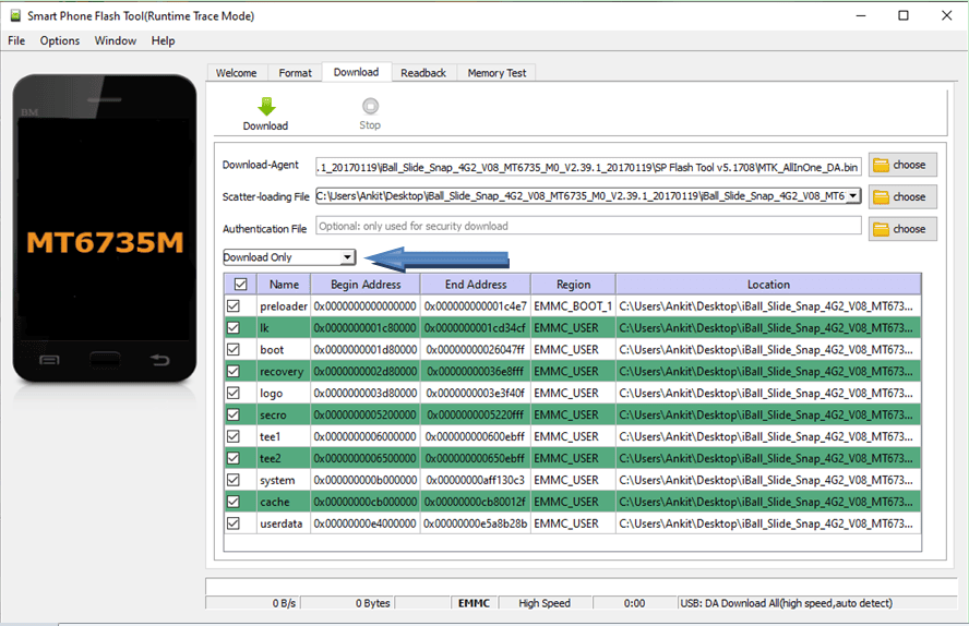 SP Flash ツールでダウンロードを見つけるステップ5。「」を選択してくださいダウンロードのみ