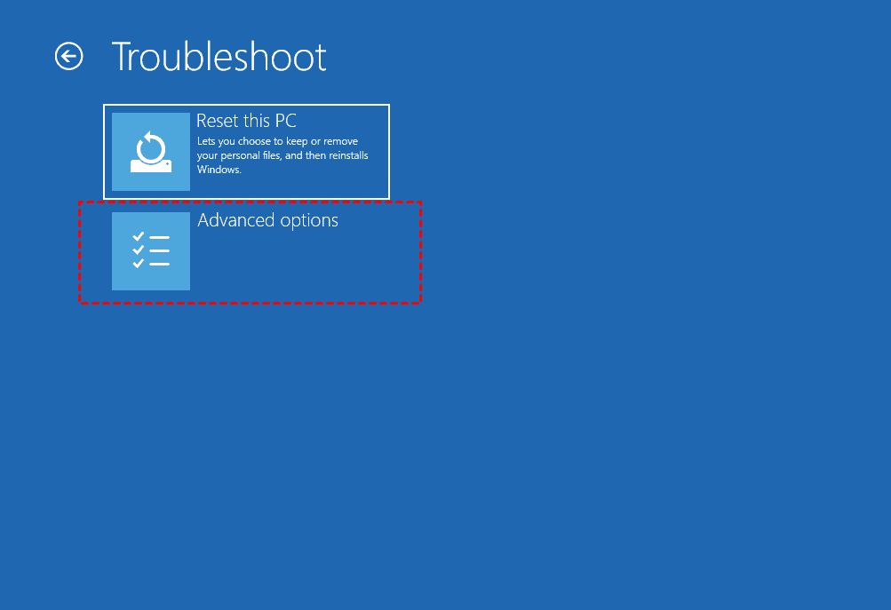 Stap 2.Selecteer in de interface Problemen oplossen “Geavanceerde opties”