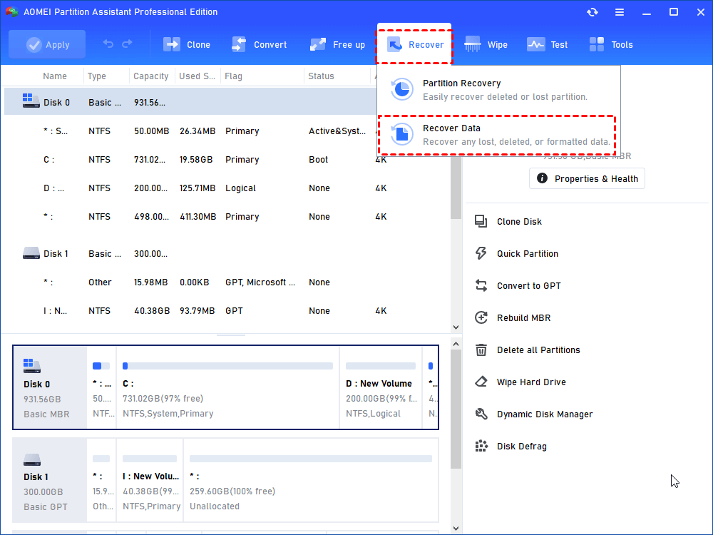 Deze multifunctionele software kan niet alleen zijn talenten ten volle laten zien in het controleren van de schijfgezondheid en het maken van back-ups van gegevens, maar kan ook dienen om apps naar een andere schijf te verplaatsen, te converteren tussen MBR/GPT, SSD veilig te wissen, enzovoort. Deze krachtige tool biedt Windows Server-gebruikers met de Server Edition ook gemak en efficiëntie bij het beheren van hun apparaten.