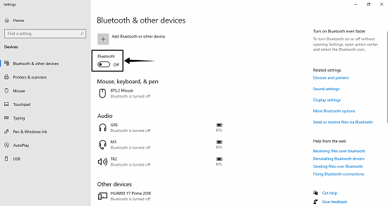- Ga op uw Windows-computer naarInstellingen > Apparaten > Bluetooth en overige. Schakel nu de Bluetooth-optie in.