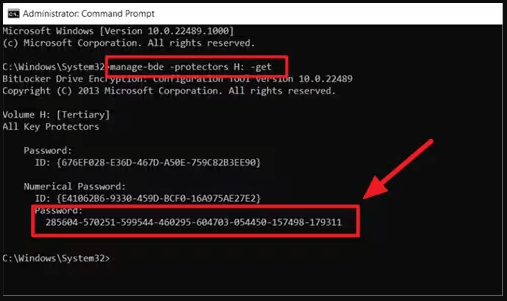 Stap 4. Typ “manage-bde -protectors H: -get.” (Vervang “H” door de letter die is toegewezen aan uw gecodeerde schijf). Druk vervolgens op “Invoeren”.