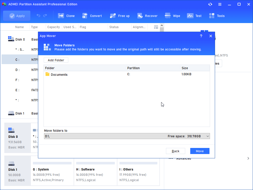 Als de eerder genoemde methoden niet aan uw verwachtingen voldoen of niet voldoen aan uw behoeften op het gebied van bestandsoverdracht, overweeg dan om een oplossing van derden te gebruiken. IEMOA Partition Assistant Professional is een tool voor snelle bestandsoverdracht die een efficiënte en gebruiksvriendelijke interface biedt, waarmee u snel bestanden in verschillende scenario's kunt overbrengen. Of u nu bestanden naar een lokale map of een externe harde schijf wilt verplaatsen of bestanden tussen twee harde schijven wilt kopiëren, deze veelzijdige software ondersteunt een verscheidenheid aan apparaten, waaronder interne/externe harde schijven, USB-drives en SD-kaarten.