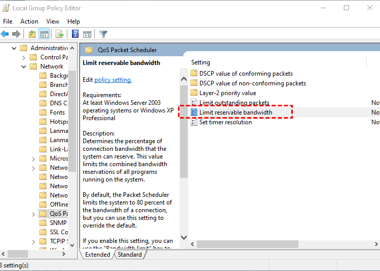 Manier 1. Wijzig de limiet voor reserveerbare bandbreedte