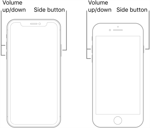 - De volgende stap is het loslaten van de zijknop terwijl u de knop Volume omlaag nog eens 10 seconden ingedrukt houdt.