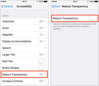 Soms kan de achtergrond van de telefoon problemen met uw scherm veroorzaken en een van de redenen zijn dat u een flikkerend iPhone-scherm heeft. Om dit tegen te gaan, zullen we verminderde transparantie in het instellingenmenu inschakelen.