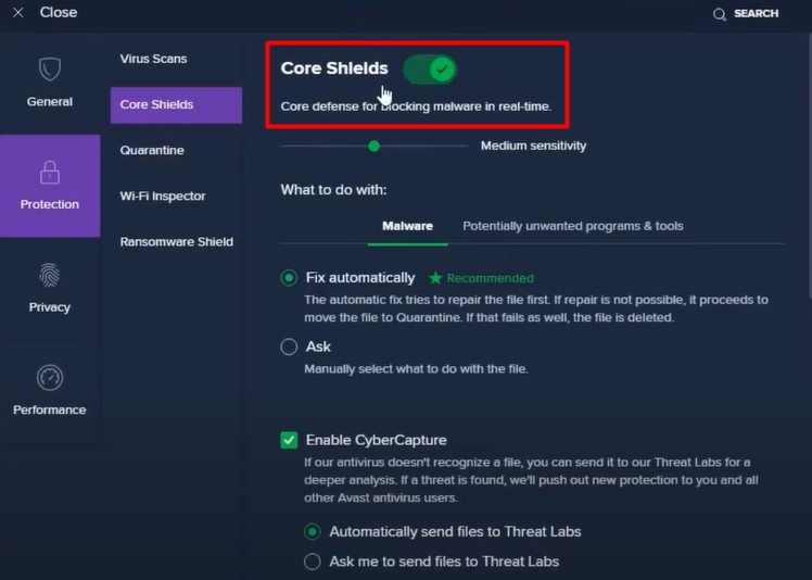 Net als de eerste oplossing zal het verwijderen van het Avast Shields-systeem een grote bijdrage leveren aan het verminderen van de zogenaamde onoverwinnelijkheid van Avast. Omdat de realtime beschermingsstrategie zo intens en rigide is, zal het uitschakelen van het schildsysteem in de Avast-gebruikersinterface de greep op u helpen verminderen.