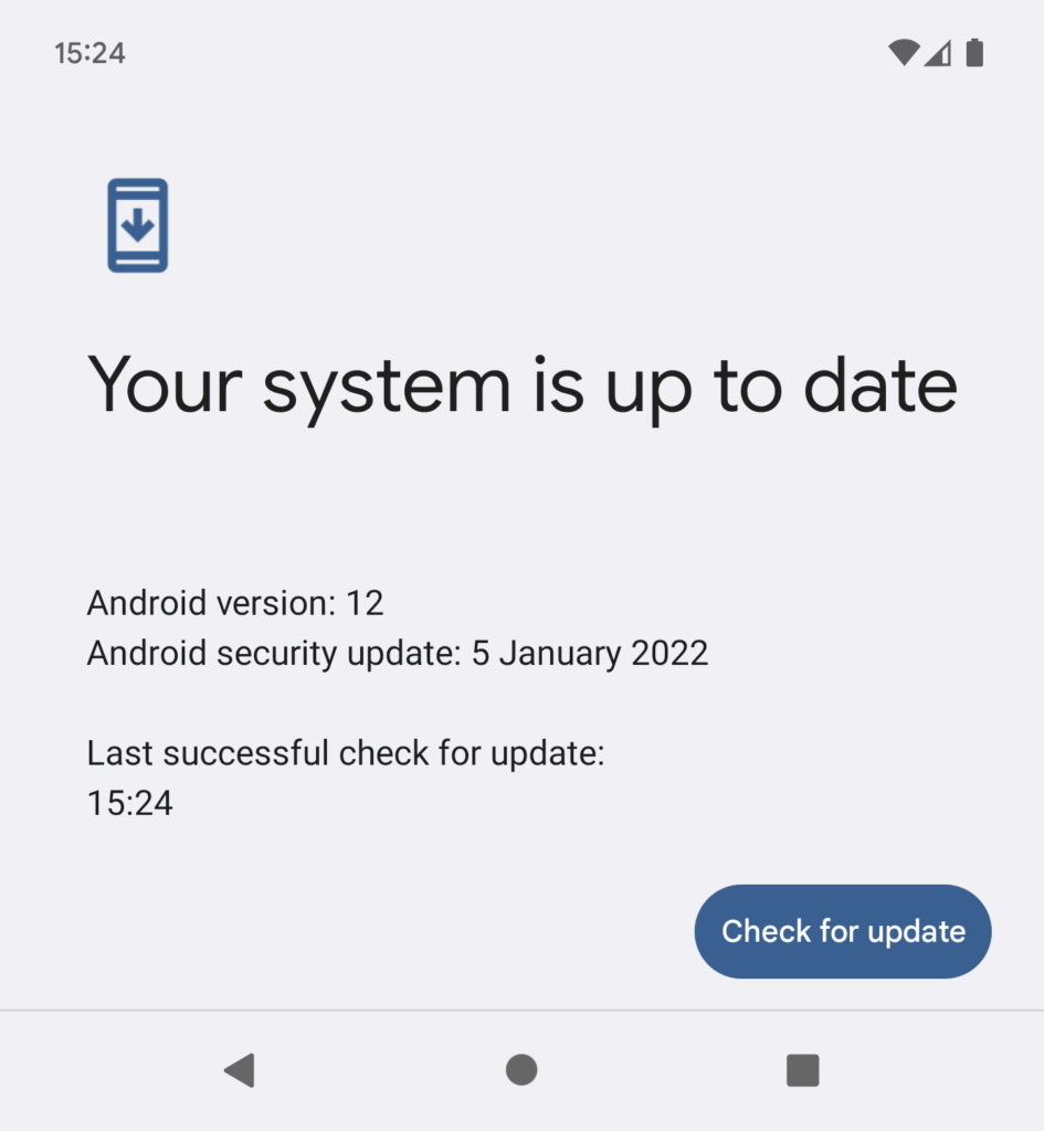 Deze koppelingzal u vertellen of uw versie van Android nog steeds wordt ondersteund. Als dit niet het geval is, moet u zeker proberen uw smartphone te upgraden, omdat deze essentiële beveiligingspatches mist. De instellingen voor Over de telefoon vertellen u ook de datum van de laatste beveiligingspatch die uw smartphone heeft ontvangen. In de afbeelding hierboven is het januari 2021, een behoorlijke tijd geleden. In de onderstaande afbeelding (gemaakt in februari 2022) kunnen we zien dat de telefoon up-to-date is, aangezien de laatste beveiligingspatch slechts een maand eerder was.