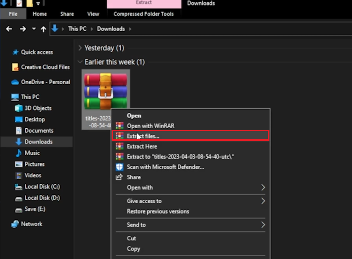 Zodra uw download is voltooid, wat doorgaans ongeveer een minuut duurt, zoekt u het sjabloonbestand in uw downloadmap. Omdat de meeste bestanden van Envato Elements in gecomprimeerde vorm worden geleverd, moet u de inhoud uitpakken. Als u een Windows-pc gebruikt, klikt u eenvoudig met de rechtermuisknop op het .zip-bestand en kiest u ervoor om het volledige bestand uit te pakken in uw downloadmap. Als u op een Mac werkt, kunt u identieke stappen volgen om het bestand uit te pakken. Dit proces bereidt uw sjabloon voor op gebruik in de komende fasen van het maken van uw logo-onthullingsanimatie.