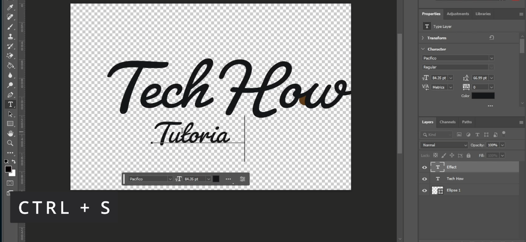 Selecteer hier het tekstgereedschap op de werkbalk om de tekst te wijzigen. Wijzig dit bijvoorbeeld in “Tech How” en “Tutorials”.