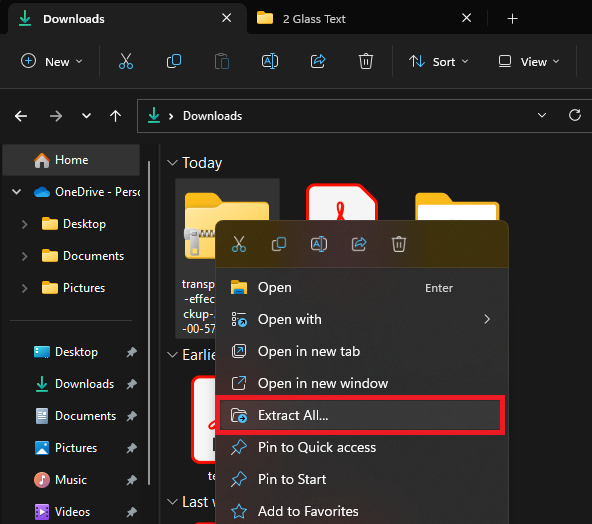 Klik met de rechtermuisknop op het bestand en kies ‘Alles uitpakken…’ om de inhoud te onthullen.