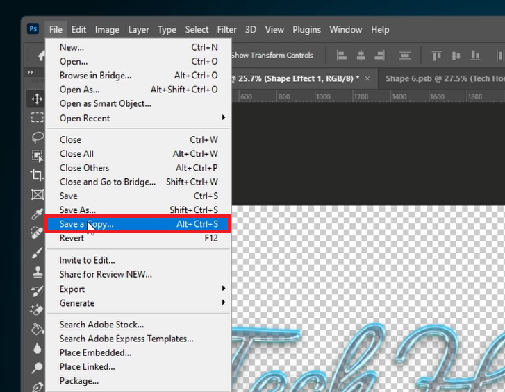 Navigeer naar “Bestand” in de werkbalk en kies voor “Een kopie opslaan”.
