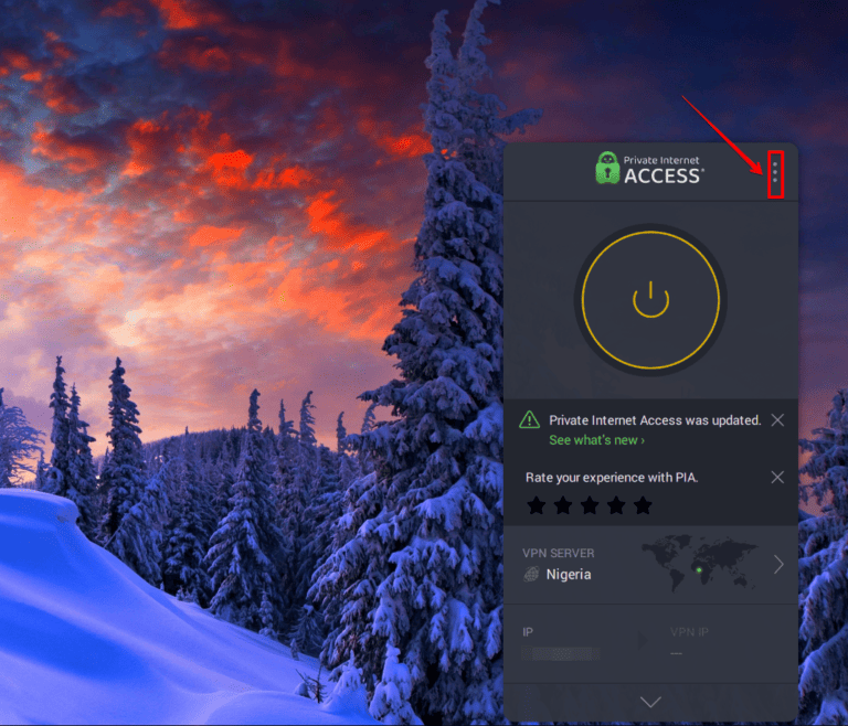 - Sluit de “Instellingen”-menu en maak verbinding met uw favoriete PIA-server.