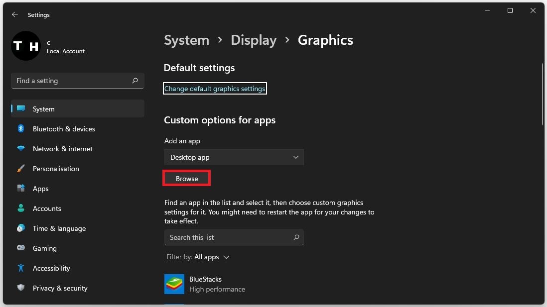 OnderAangepaste opties voor apps, selecteerBladeren uw bestandsverkenner wordt geopend.