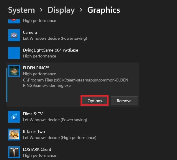 Hierdoor wordt Elden Ring toegevoegd aan de lijst met applicaties in uw Windows-instellingen.