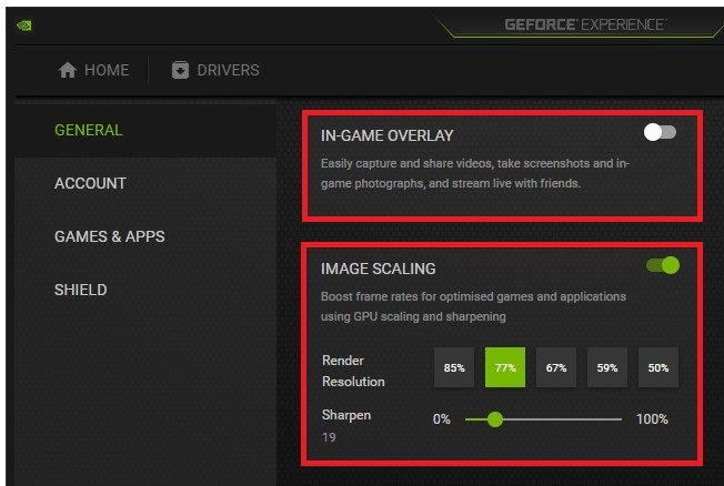 GeForce Experience-instellingen> Algemeen> Beeldschaling