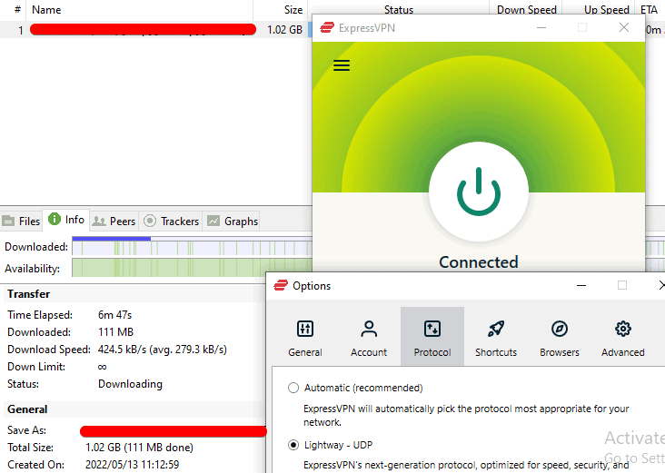Volgende,Ik heb verbinding gemaakt met het Lightway UDP-protocol via mijn Windows ExpressVPN-app. Ik heb een Zuid-Afrikaanse server geselecteerd om nauwkeurige vergelijkingsresultaten te krijgen.