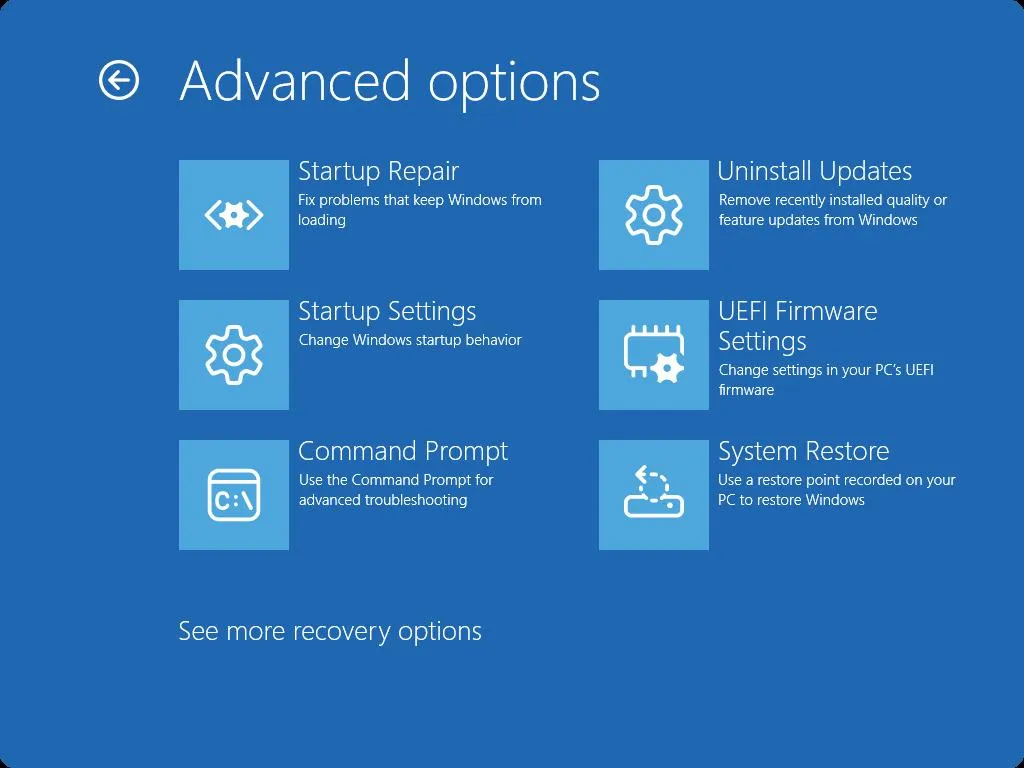 - Hierdoor wordt Windows Recovery Environment of WinRE gestart.