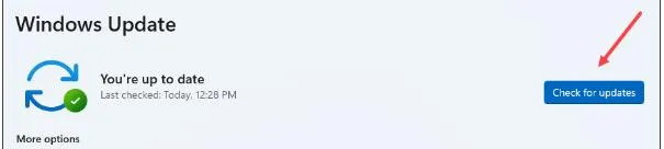 - Klik vervolgens aan de rechterkant op de knop Controleren op updates.